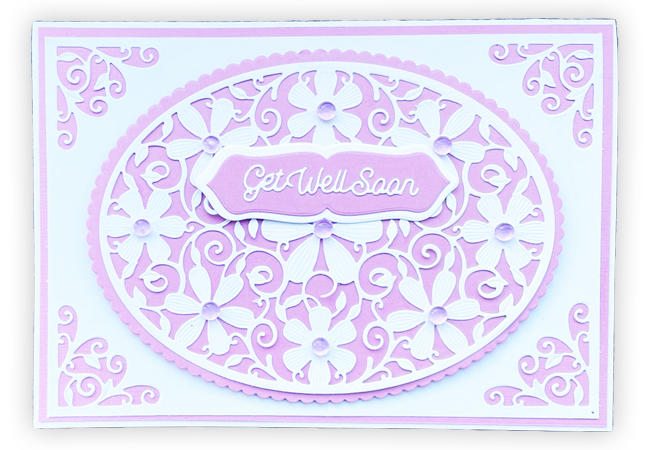 Cut the rippled bloom floral panel in white and layer onto the pink mount