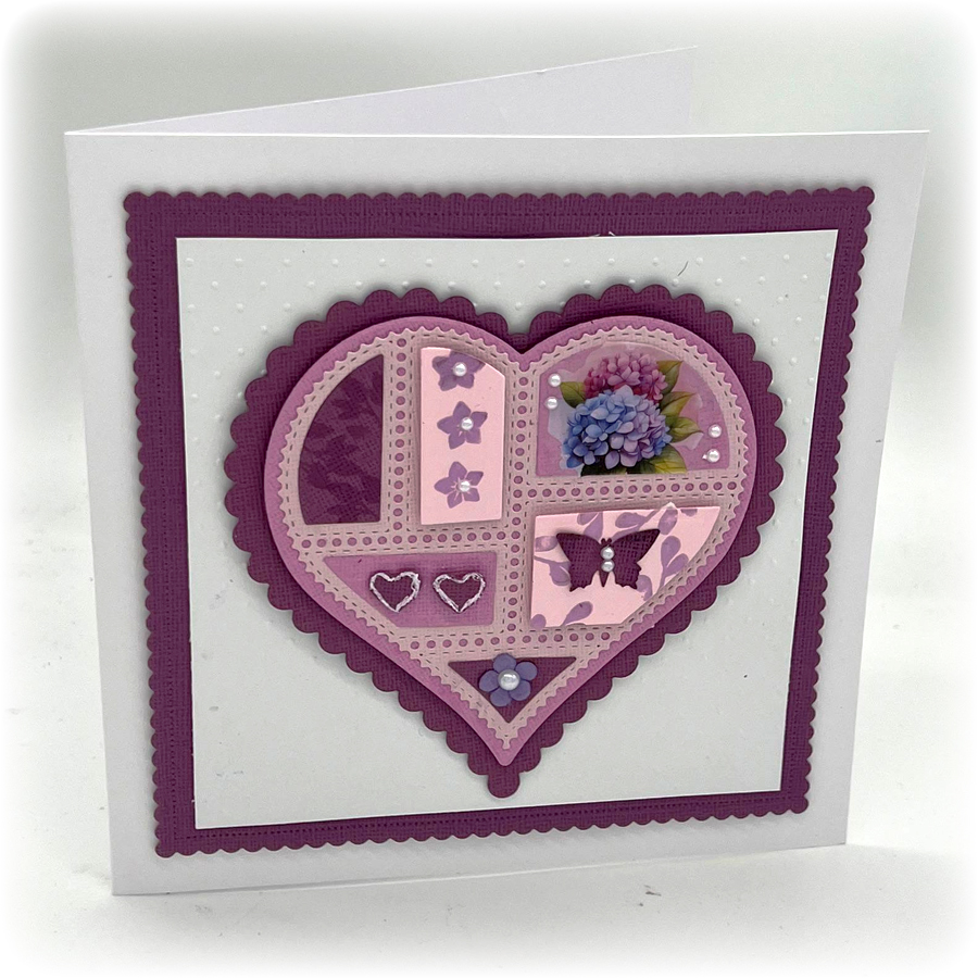 Cut the next solid heart in rose pink card (from the same lilac pack)