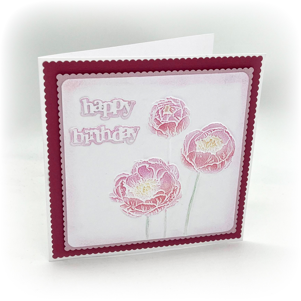 This week’s card features the Nellie’s Choice 3D Embossing Folder – Flowers. The beautifully textured floral design adds depth and elegance, perfect for spring themes or special occasions.